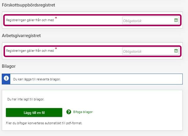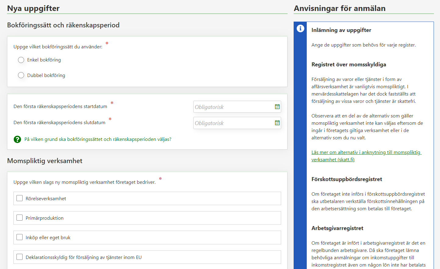 Observera att du inte kan ändra registreringsuppgifterna förrän företaget eller organisationen har ett FO-nummer.