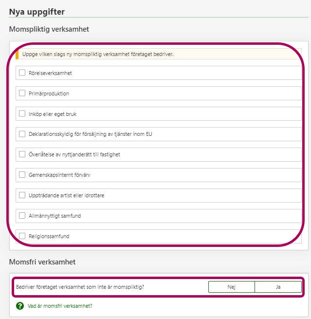 Observera att du inte kan ändra registreringsuppgifterna förrän företaget eller organisationen har ett FO-nummer.