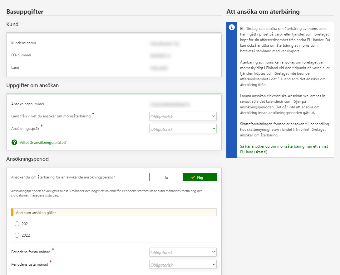3. Fyll i ansökans basuppgifter.