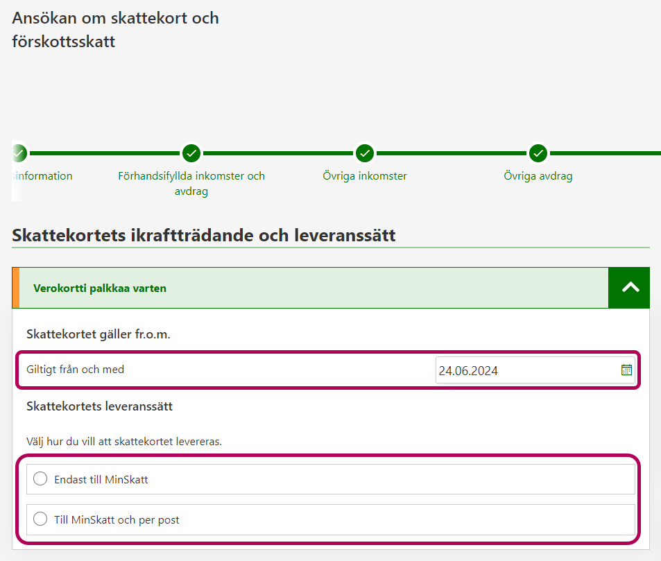 - Välj om du vill ha skattekortet