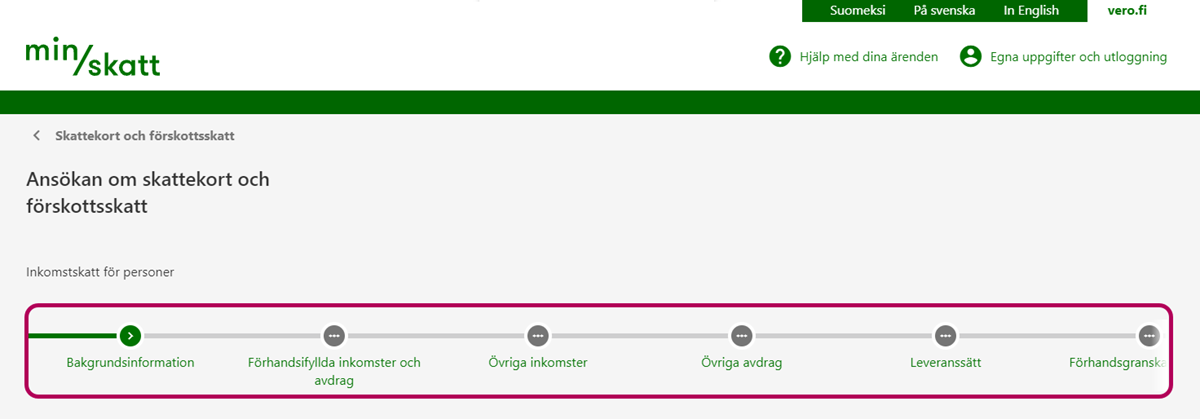 När du har lämnat alla avdragsuppgifter ska du gå till fasen Leveranssätt.
