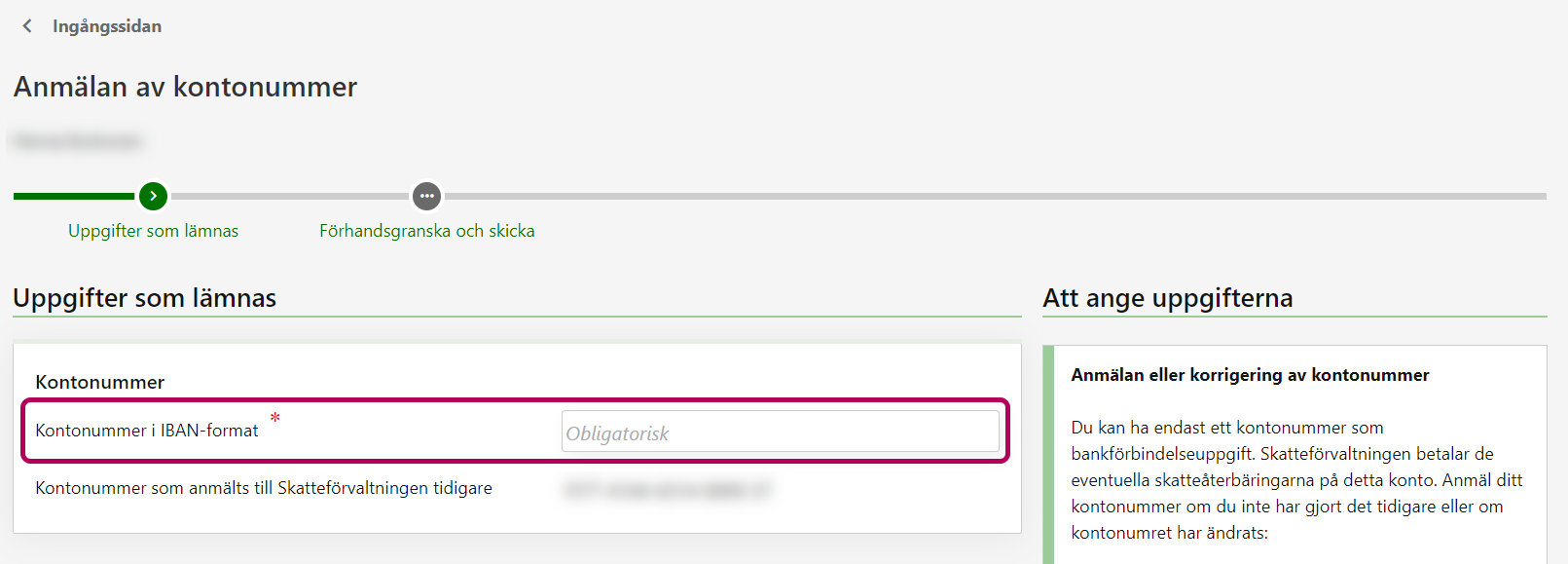 Skriv kontonumret i punkten Kontonummer i IBAN-format.