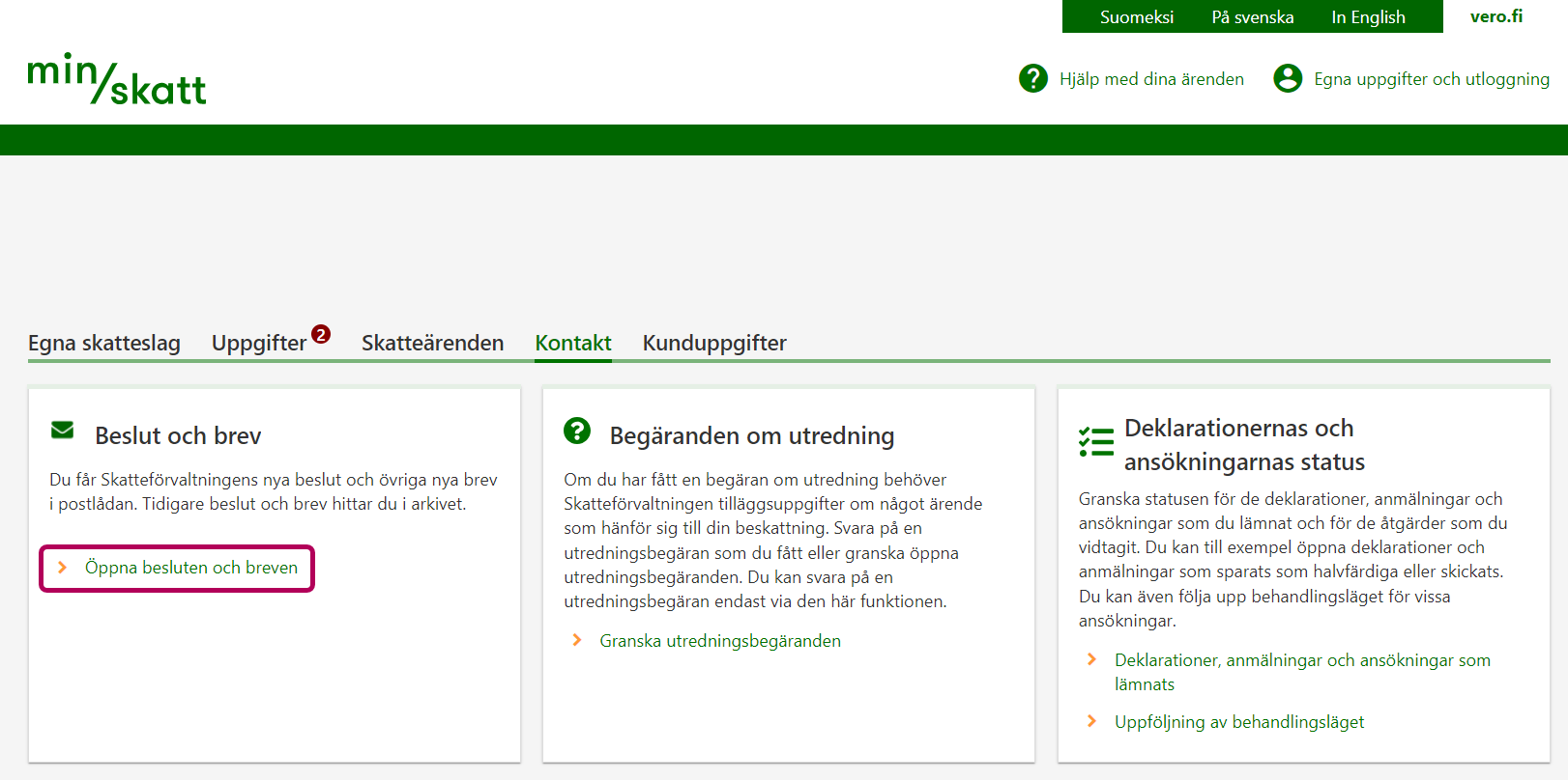 Gå till MinSkatt om du ännu inte har loggat in i tjänsten (öppnas i ett nytt fönster).