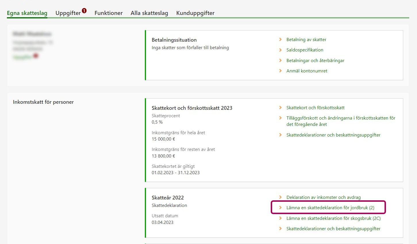 Alternativt kan du lämna in skattedeklarationen för skogsbruk