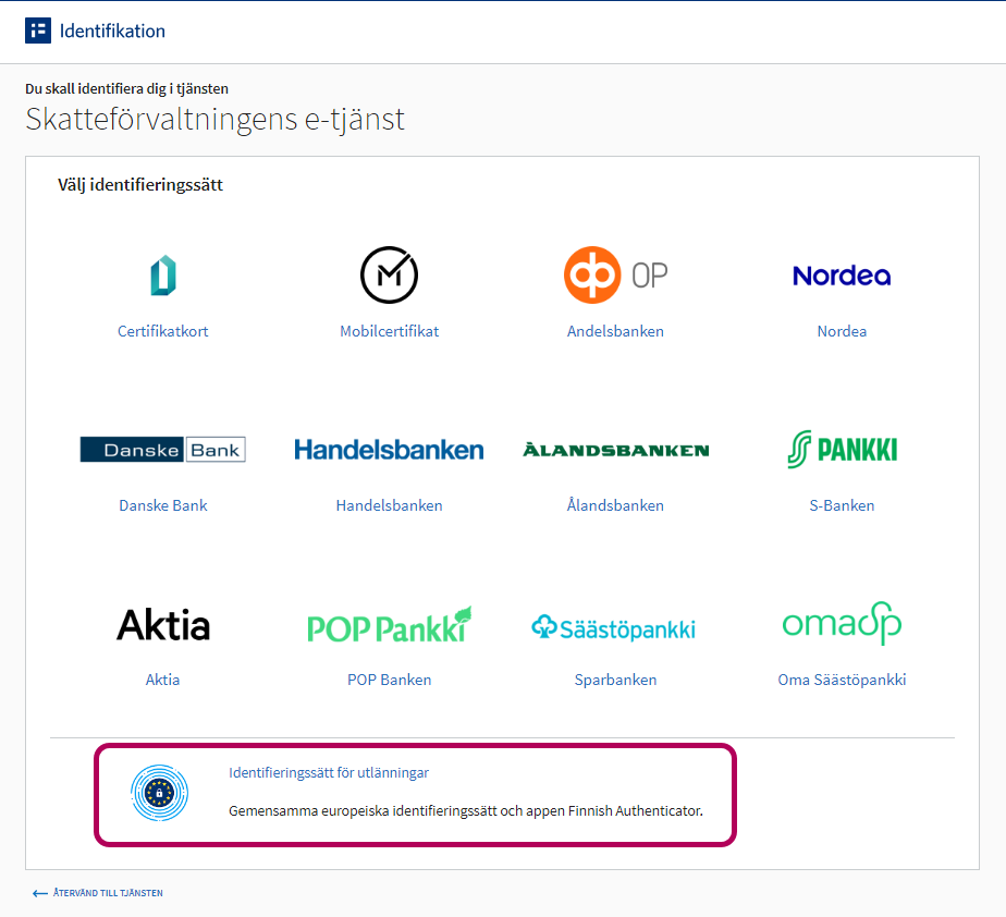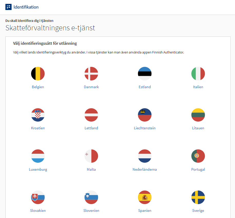 Välj det identifieringsverktyg som används i ditt land och logga in i tjänsten.