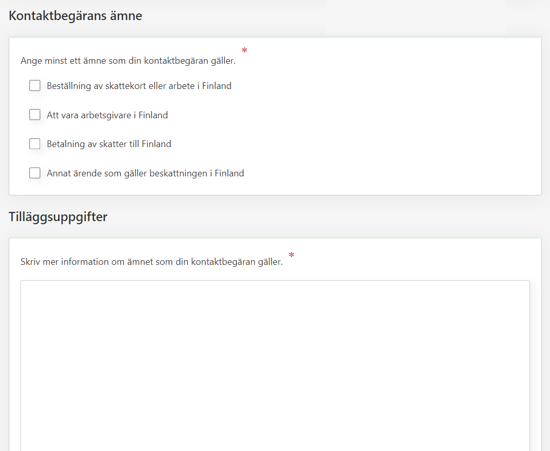 Som medborgare i ett EU-land kan du inleda ditt skatteärende elektroniskt i Finland genom att fylla i en kontaktblankett i MinSkatt.