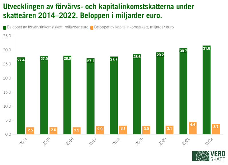 Allt som allt var beloppet av kapitalinkomstskatterna 3,7 miljarder euro för 2022.