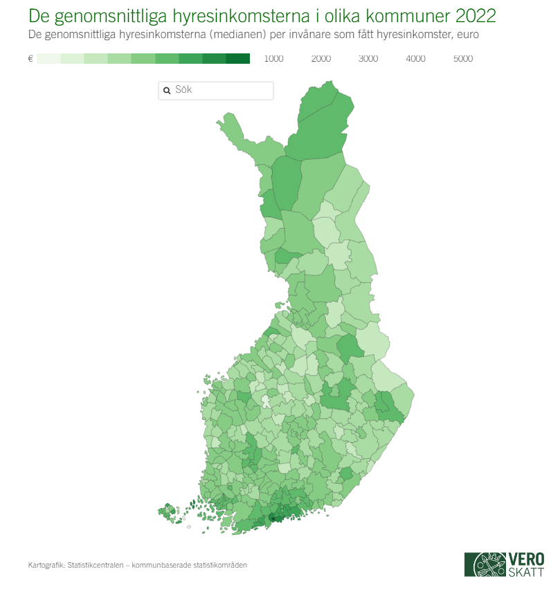 Skatteförvaltningens meddelande, 27.12.2023Grankullabor hade de största hyresinkomsterna och kökarbor de minsta