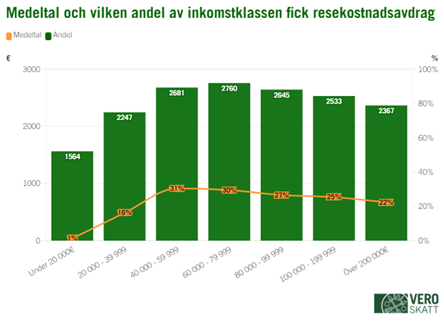 Bild 11: Medeltal och vilken andel av inkomstklassen fick resekostnadsavdrag