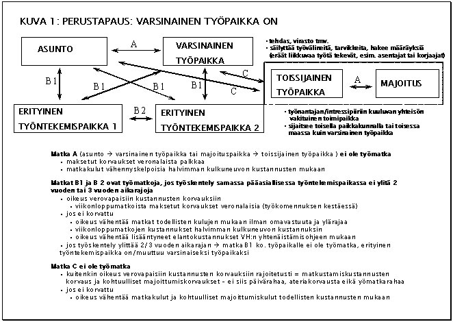 - palkansaajan asunnon ja varsinaisen työpaikan väliset matkat,