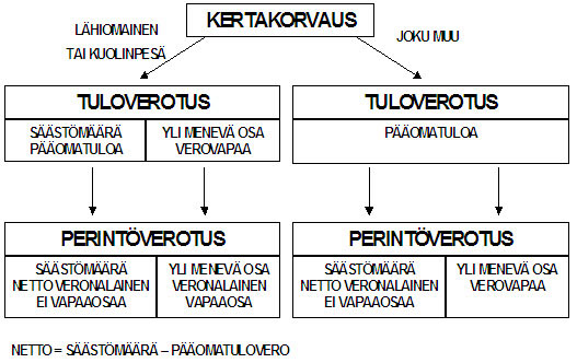 Kahdenkertaisen veron poistamiseksi säästömäärästä tuloverotuksessa määrätty vero vähennetään perityn omaisuuden arvosta perintöverotuksessa (PerVL 9.5 §). Vähennettävänä määränä voidaan pitää pääomatuloveroprosentin mukaista määrää veronalaiseksi tuloksi luetusta säästömäärästä (tällä hetkellä säästömäärä x 28 %).