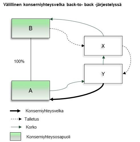 C-rahasto omisti kaikki luxemburgilaisen B S.A:n osakkeet, ja B S.A. omisti 87,5 prosenttia suomalaisen A Oy:n osakkeista. A Oy:lle kertyi verovuonna 2015 etuyhteysvelkojen nettokorkomenoja ja yhtiö vaati korkomenojensa hyväksymistä kokonaisuudessaan vähennyskelpoisiksi B S.A:n laatiman konsernitaseen vertailutietojen perusteella.