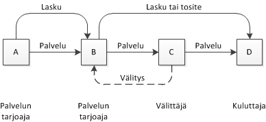 Palvelun myyntiin osallistuva elinkeinonharjoittaja on osa myyntiketjua palvelun tarjoajan ja asiakkaan välillä.