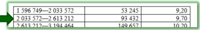 | 3 400 000–3 500 000 | 0,10 | 0,90 |