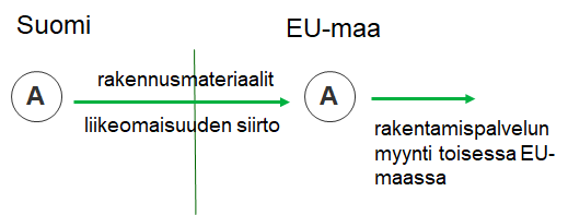 Rakentamispalvelu on myyty siinä maassa, jossa rakentaminen tapahtuu (AVL 67 §). Kun myyjä siirtää tavaroita toiseen EU-maahan siellä tapahtuvaa rakentamispalvelun suorittamista varten, myyjä tekee tämän ohjeen luvussa 7 tarkoitetun liikeomaisuuden siirron. Siirto ilmoitetaan Suomessa yhteisömyyntinä ja määränpääjäsenvaltiossa yhteisöhankintana. Suomalainen myyjä saattaa joutua rekisteröitymään arvonlisäverovelvolliseksi siinä EU-maassa, jossa rakennustyö tapahtuu (ks. myös ohjeen esimerkki 19).