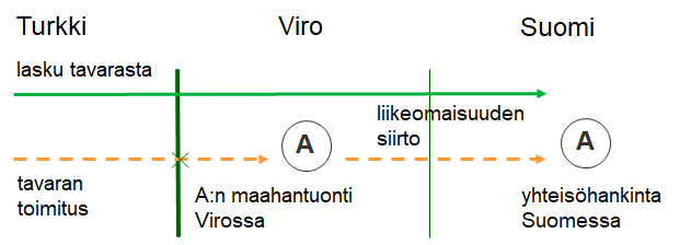 Tavaran myyntimaa on Viro, koska tavaran kuljetus ostajalle alkaa sieltä. Myyjän tulee selvittää myynnin arvonlisäverokohtelu ja mahdolliset rekisteröitymisvelvoitteensa Virosta. Kyse ei ole Suomessa tapahtuneesta yhteisömyynnistä eikä myyntiä ilmoiteta yhteisömyyntinä Suomessa annettavilla arvonlisävero- ja yhteenvetoilmoituksilla.