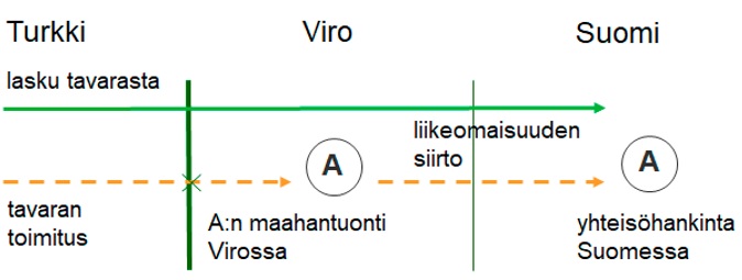 Tavaran myyntimaa on Viro, koska tavaran kuljetus ostajalle alkaa sieltä. Myyjän tulee selvittää myynnin arvonlisäverokohtelu ja mahdolliset rekisteröitymisvelvoitteensa Virosta. Kyse ei ole Suomessa tapahtuneesta yhteisömyynnistä eikä myyntiä ilmoiteta yhteisömyyntinä Suomessa annettavilla arvonlisävero- ja yhteenvetoilmoituksilla.