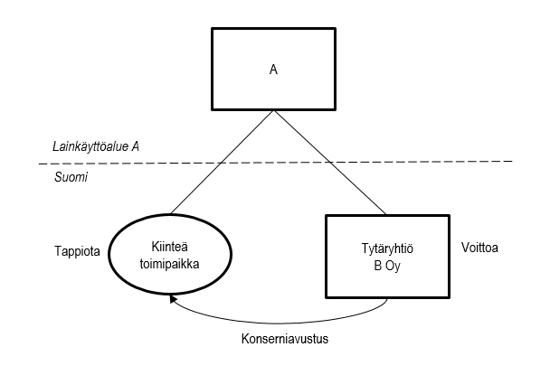 - kiinteän toimipaikan lainkäyttöalueen verotuksessa menoa vastaavan tulon katsotaan kuuluvan pääliikkeelle ja pääliikkeen lainkäyttöalueen verotuksessa tulon katsotaan kuuluvan kiinteälle toimipaikalle, eikä pääliikkeen lainkäyttöalueella veroteta kiinteän toimipaikan tuloa.