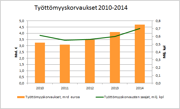 Työttömyyskorvauksia ovat ansiosidonnainen työttömyyspäiväraha ja peruspäiväraha. Verovuonna 2014 henkilöasiakkaiden saamat työttömyyskorvaukset olivat yhteensä 4,7 miljardia euroa (+14,2 %). Työttömyyskorvauksia sai yhteensä noin 664 tuhatta henkilöä (+7,7 %).