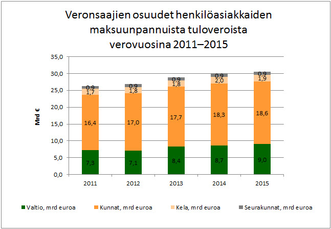 Verohallinto tilittää keräämänsä henkilöasiakkaiden tuloverot valtiolle, kunnille ja seurakunnille.