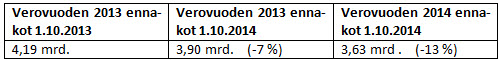 Taulukko 2: Maksuunpannut yhteisöjen ennakkoverot, tilanne 1.10.2014.