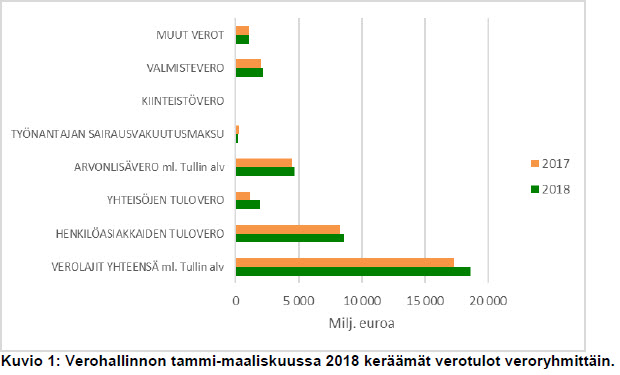 Verohallinnon tilastoja: Verotulojen kehitys maaliskuussa 2018