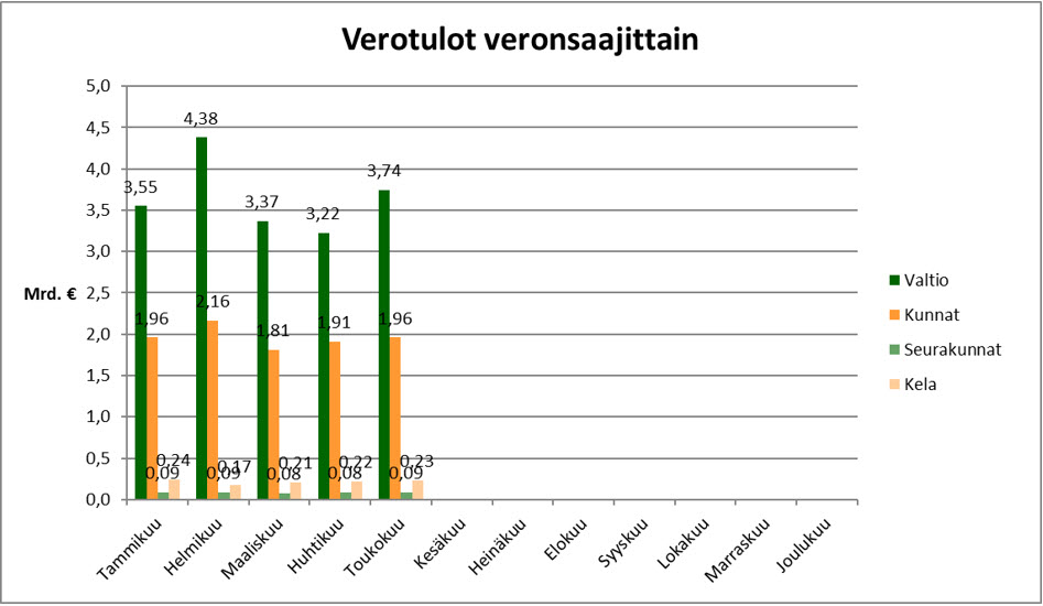 Valmisteveroja kerättiin Verohallinnossa tammi-toukokuussa 3 286 miljoonaa euroa. Merkittävin valmistevero tammi-toukokuussa olivat energiaverot, joita kertyi 2 051 miljoonaa.