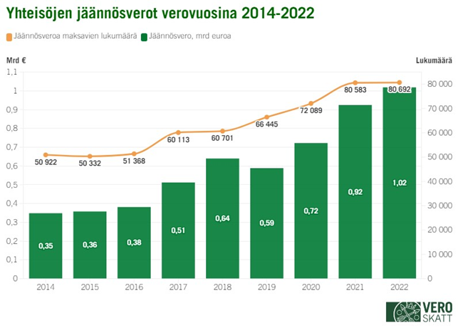 Kuva 5: Yhteisöjen jäännösverot verovuosina 2014-2022