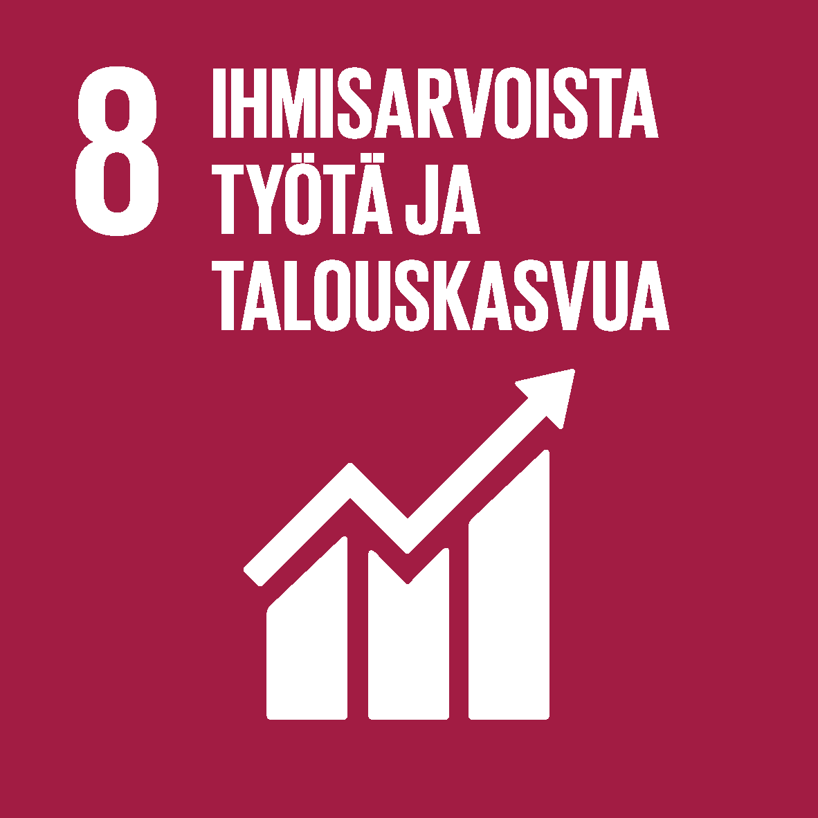 Tässä luvussa kuvattu toimintamme (kädenjälki) vaikuttaa myönteisesti erityisesti YK:n kestävän kehityksen tavoite 8:n toteutumiseen. Maailmanlaajuinen tavoite edistää kaikkia koskevaa kestävää talouskasvua, täyttä ja tuottavaa työllisyyttä sekä säällisiä työpaikkoja. Verohallinto edistää tätä tavoitetta muun muassa tuottamalla yhteiskunnalle vaikuttavia palveluita. Kehitämme palvelukanaviamme ja hyödynnämme digitalisaatiota. Panostamme laadukkaaseen, vastuulliseen ja vuorovaikutteiseen viestintään.