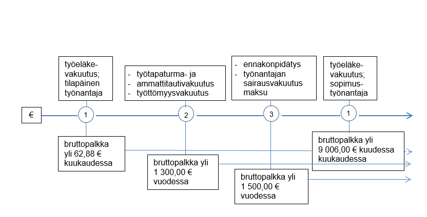 Kun maksamasi palkka ylittää jonkin yllä kuvatuista rajoista, sinun pitää huolehtia kyseisestä velvoitteesta, esimerkiksi ottaa työntekijälle vakuutus.