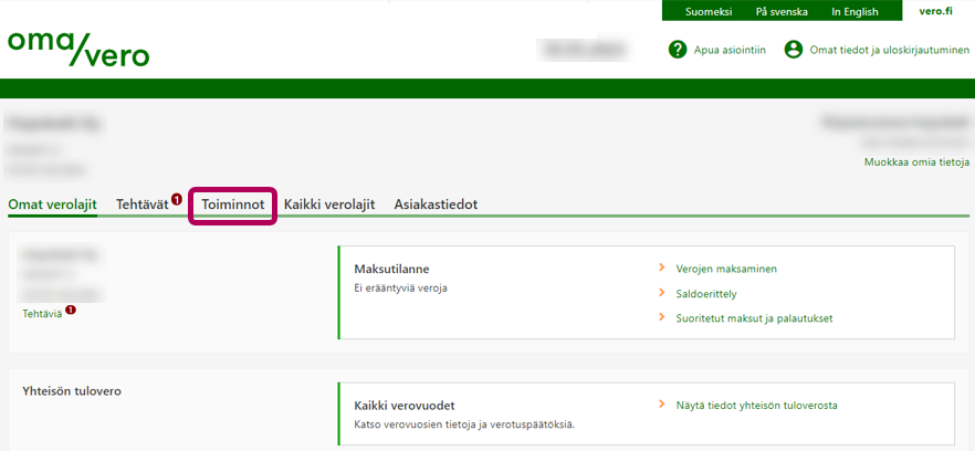 OmaVero aukeaa Omat verolajit -välilehdelle. Valitse välilehti Veroasiat.