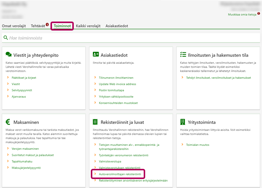 Näin hakeudut rekisteröidyksi autoveroilmoittajaksi OmaVerossa