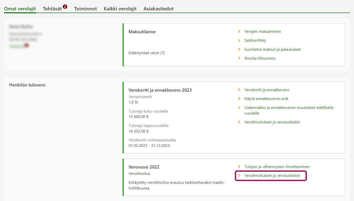 Voit ilmoittaa vuokratulot verokortille tai hakea ja maksaa ennakkoveroa jo vuoden 2025 aikana. Silloin vero kertyy ajantasaisesti.